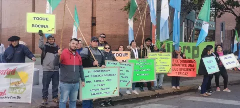 Este viernes, desde las 7.30, integrantes de UPCP se apostaron frente a la Casa de las Culturas, en el centro de Resistencia, en reclamo de diversos puntos al Ejecutivo provincial.