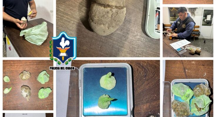 Los elementos fueron entregados por un hombre. Al inspeccionar una bolsa con verduras, los efectivos constataron que una papa presentaba un corte y contenía en su interior seis envoltorios. Dos de ellos poseían una sustancia blanquecina y los restantes una sustancia vegetal de color verde amarronado.