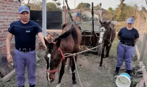 En la jornada de este miércoles, en horas de la siesta, agentes policiales fueron alertados acerca de un caso de violencia animal hacia dos caballos.