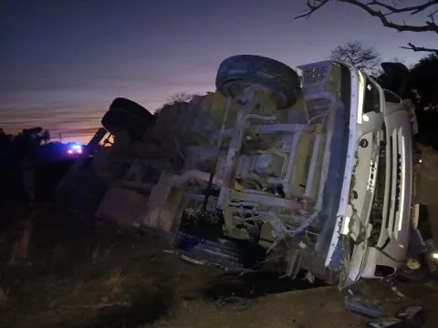 Según informaron fuentes policiales, un camión Iveco Cursor con acoplado, conducido por L.A.S, de 49 años, domiciliado en la ciudad de Santiago del Estero, perdió el control y terminó volcando sobre la banquina.