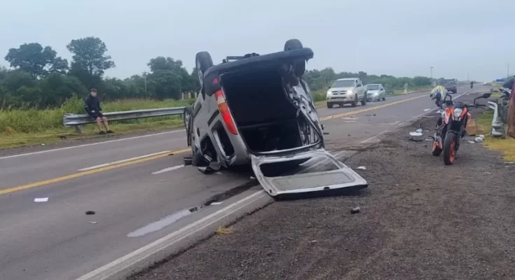 A su arribo, constataron que había volcado una camioneta Renault Kangoo en la que viajaban cinco personas, de 45, 39, 18, 17 y 8 años.