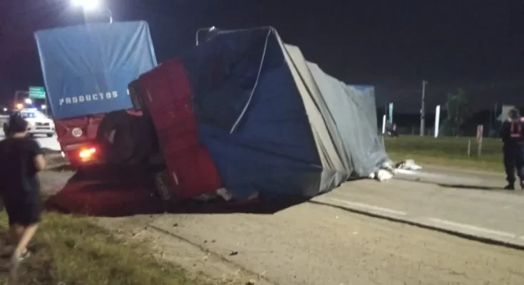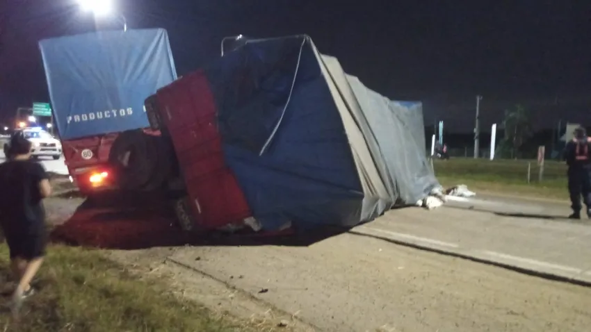 Vuelco de acoplado en la autovía Nicolás Avellaneda provocó susto, pero no dejó personas lesionadas. Hubo una falla de los frenos.